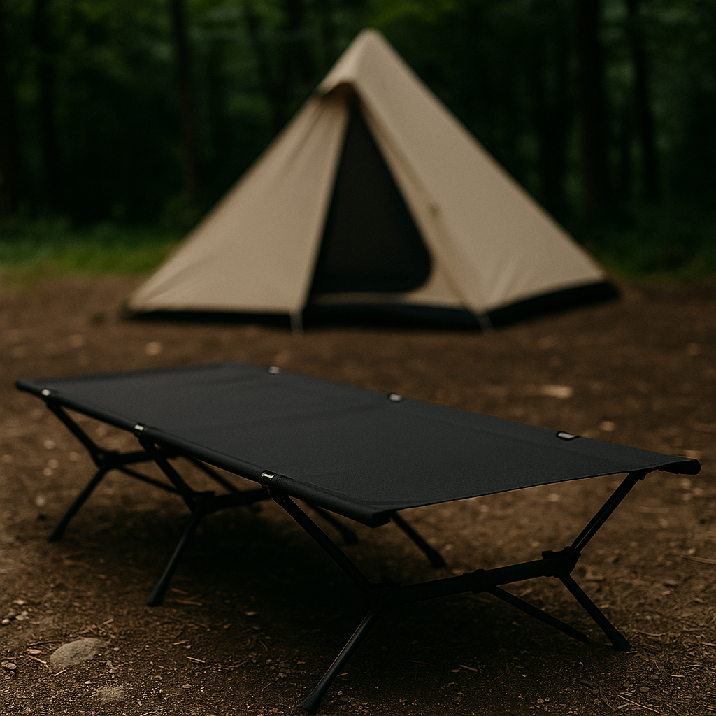 • キャンプコット:アルミフレーム&布地のシンプルなタイプ