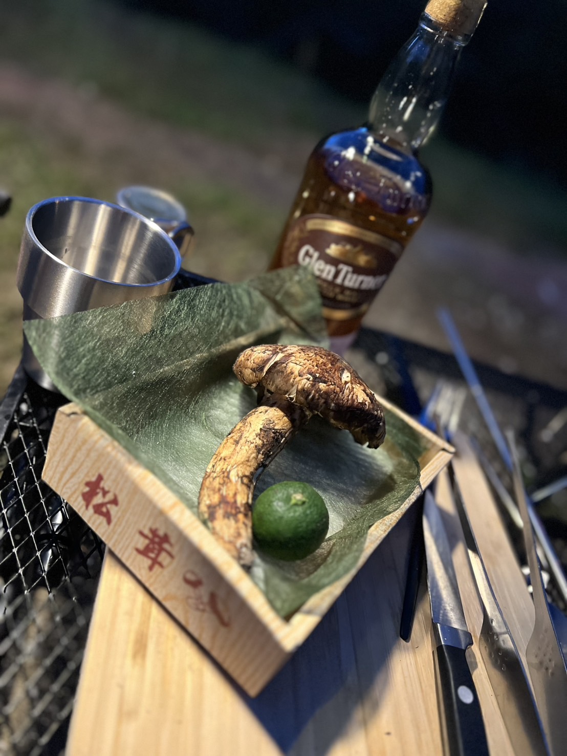 キャンプ場に漂う焚き火の煙に、松茸の香ばしさが重なる瞬間——。
